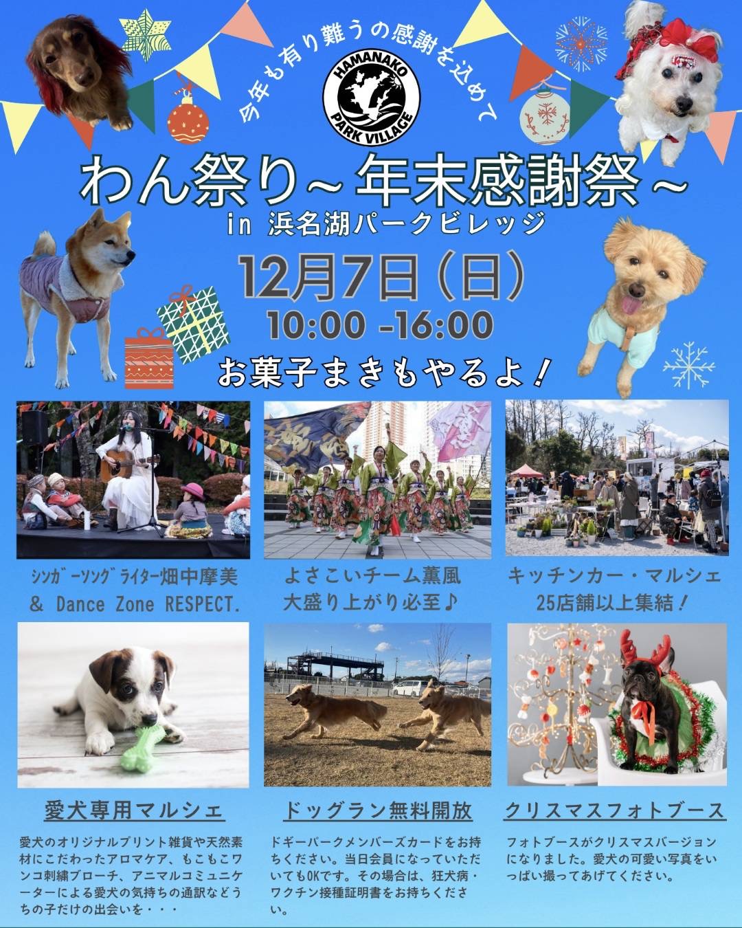 12/7(日)わん祭り~年末感謝祭~ 2025 11/08 お知らせ タイムスケジュール 畑中摩美&キッズダンス 1部 11:30~12:00 2部 14:15~14:45 よさこいチーム薫風 13:30~14:00 お菓子まき 15:00~ お知らせ よかったらシェアしてね! URLをコピーしました! URLをコピーしました! 関連記事 ハロウィンウィーク 2025-10-24 わんちゃん仮装コンテスト出場犬募集 2025-10-09 【限定15セット】わんちゃん用豪華おせち受付開始 2025-10-09 11/8(金)初心者向けキャンプ体験 2024-10-03 静岡第一TV「まるごと/突撃インディアンス」にて紹介していただきました 2024-07-29 7/6 満員御礼 2024-06-27 7/20(土)わん祭りin浜名湖パークビレッジ開催 2024-06-10 浜名湖パークビレッジグランドオープン 2024-03-09