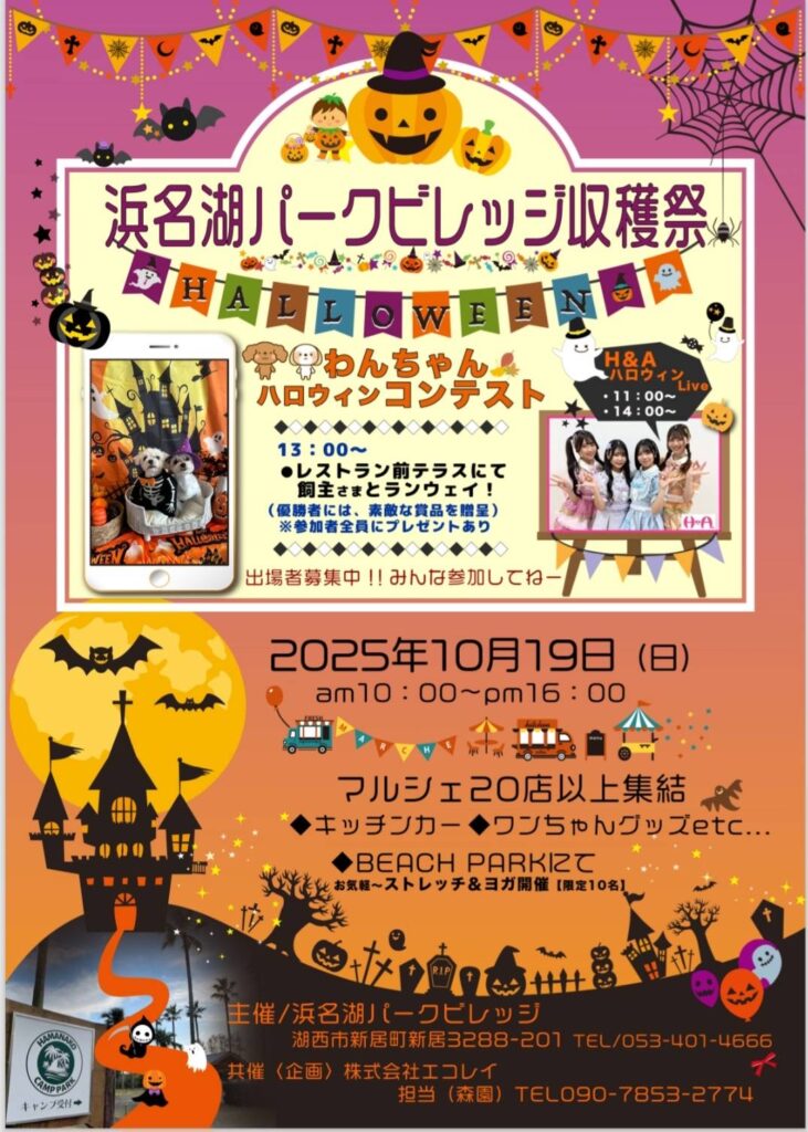 10/19(日)開催 浜名湖パークビレッジ収穫祭 2025 10/05 お知らせ 収穫祭の中のイベントも盛りだくさん!!! お知らせ よかったらシェアしてね! URLをコピーしました! URLをコピーしました! 関連記事 わんちゃん仮装コンテスト出場犬募集 2025-10-09 【限定15セット】わんちゃん用豪華おせち受付開始 2025-10-09 11/8(金)初心者向けキャンプ体験 2024-10-03 静岡第一TV「まるごと/突撃インディアンス」にて紹介していただきました 2024-07-29 7/6 満員御礼 2024-06-27 7/20(土)わん祭りin浜名湖パークビレッジ開催 2024-06-10 浜名湖パークビレッジグランドオープン 2024-03-09 オープニングスタッフ募集! 2024-02-08